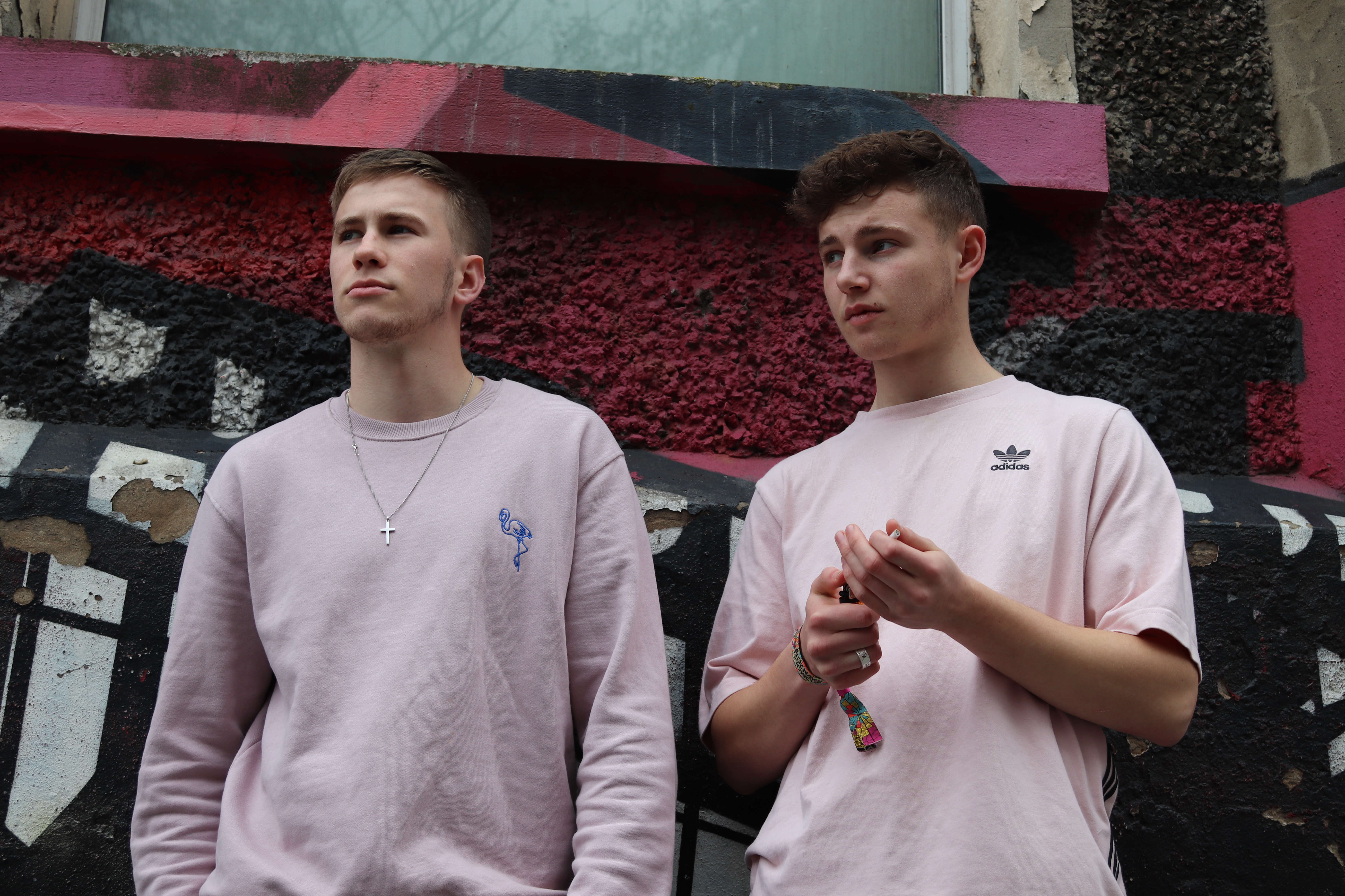 For this photoshoot, we went to areas in Nottingham such as the lace market and Hockley where we found lots of graffiti to use as the backdrop for our photos. We got two of our mates to model for this. Overall, I think that the photo turned out very good considering it was our first photoshoot, and i think we captured the message we were trying to portray well.